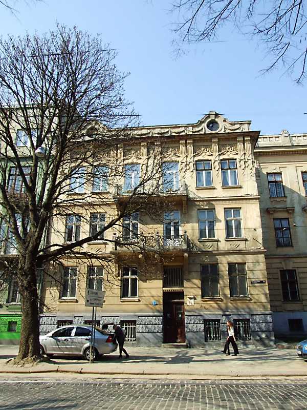 Житловий будинок (№ 16) Розмір зображення: 600:800 піксел 19 квітня 2013 р. Фото М.І.Жарких. Вкладені елементи 2013 р. Сецесійні вікна 4-го поверху