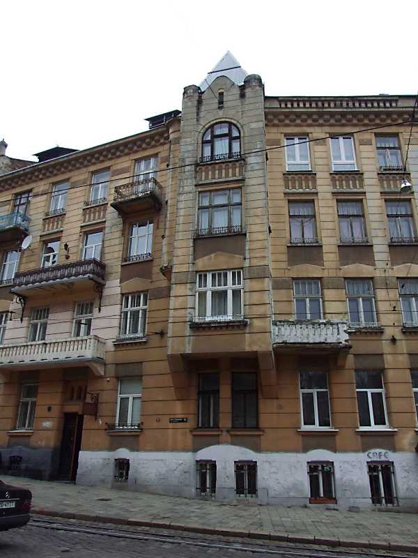 Житловий будинок у стилі сецесії спроектовано архітекторами Владиславом Дердацьким та Вітольдом Мінкевичем у 1909 році; побудований фірмою Івана Левинського.