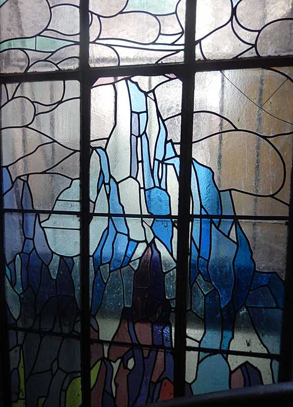Фрагмент верхньої частини вітража Розмір зображення: 576:800 піксел Фото Ольги Соляр, 16 жовтня 2017 р. Попередня сторінка | Вище | Наступна сторінка