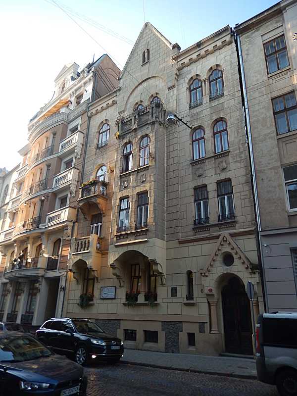 2017 р. Загальний вигляд Розмір зображення: 600:800 піксел Фото Ольги Соляр, 16 жовтня 2017 р. Вкладені елементи Вітраж сходової клітки (+)