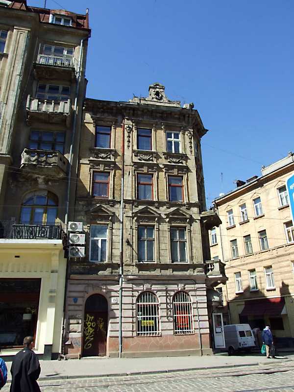 2013 р. Головний фасад Розмір зображення: 600:800 піксел 18 квітня 2013 р. Фото М.І.Жарких. Вкладені елементи Фронтон Вікно 3-го поверху Вікно 2-го поверху
