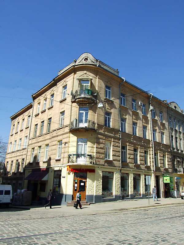Житловий будинок (№ 17)Розмір зображення: 600:800 піксел Ліворуч – вулиця Сянська, праворуч – вулиця Богдана Хмельницького. 18 квітня 2013 р. Фото М.І.Жарких. |