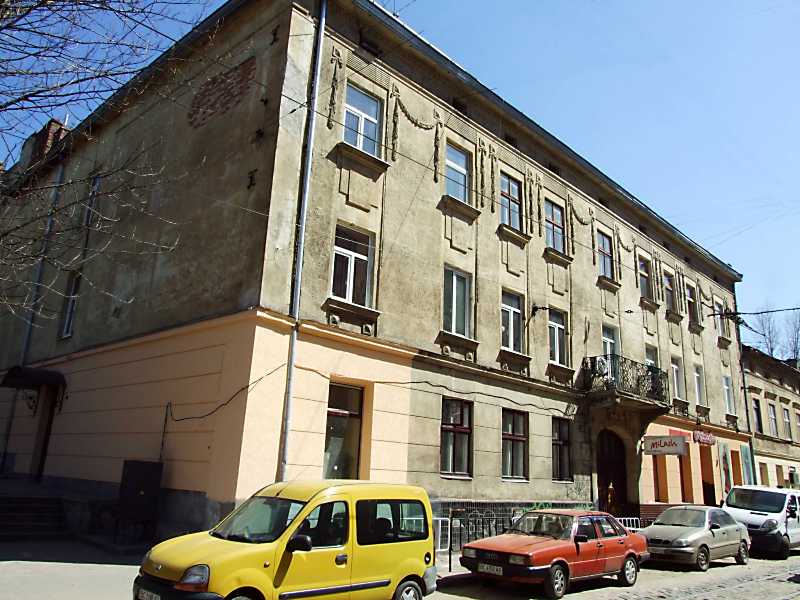 Житловий будинок (№ 20) Розмір зображення: 800:600 піксел 18 квітня 2013 р. Фото М.І.Жарких. Вкладені елементи 2013 р. Сецесійне вікно 3-го поверху