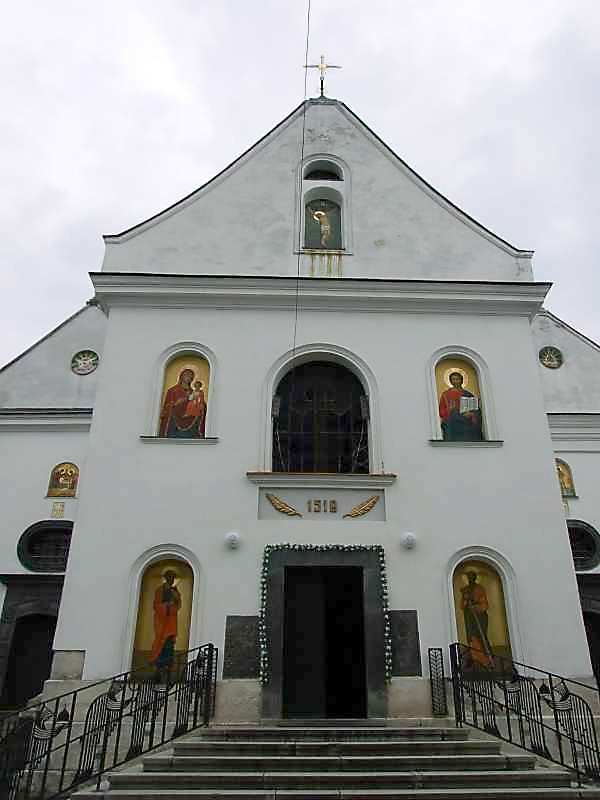 2007 р. Загальний вигляд із заходу Розмір зображення: 600:800 піксел 13 вересня 2007 р. Фото М.І.Жарких. Вкладені елементи Надгробна плита зліва від центрального порталу Надгробна плита справа від центрального порталу