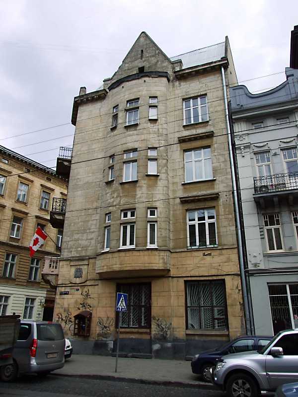 Житловий будинок (№ 2)Розмір зображення: 600:800 піксел Фасад по вул. І. Франка (вул. Богомольця починається ліворуч, за рогом будинку). 4 квітня 2012 р. Фото М.І.Жарких. Будинок споруджено в 1907 – 1908 рр. за проектом Казимира Жечицького. |