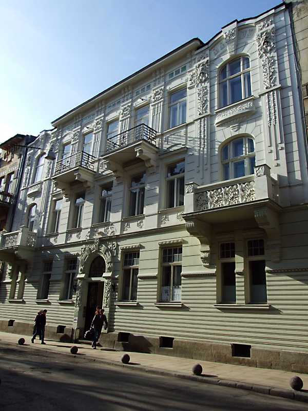 Будинок (№ 6)Розмір зображення: 600:800 піксел Загальний вигляд. 16 квітня 2013 р. Фото М.І.Жарких. Під № 6 2006 року відкрили Інститут дослідження країн Східної Європи. Ілько Лемко Джерело: “”, 15 червня 2007 року, № 101 (1352) |