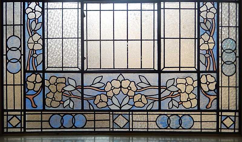 Нижнє полотнище вітража Розмір зображення: 800:470 піксел Фото Ольги Соляр, 16 жовтня 2017 р. Попередня сторінка | Вище | Наступна сторінка