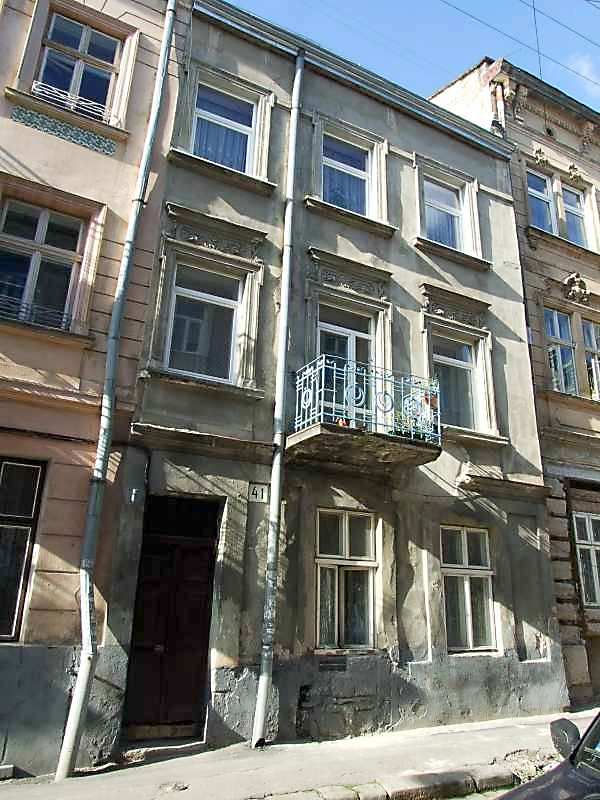 Житловий будинок (№ 41) Розмір зображення: 600:800 піксел 14 вересня 2007 р. Фото М.І.Жарких. Вкладені елементи 2012 р. У будинку XVII століття у Львові встановили пластикові вікна