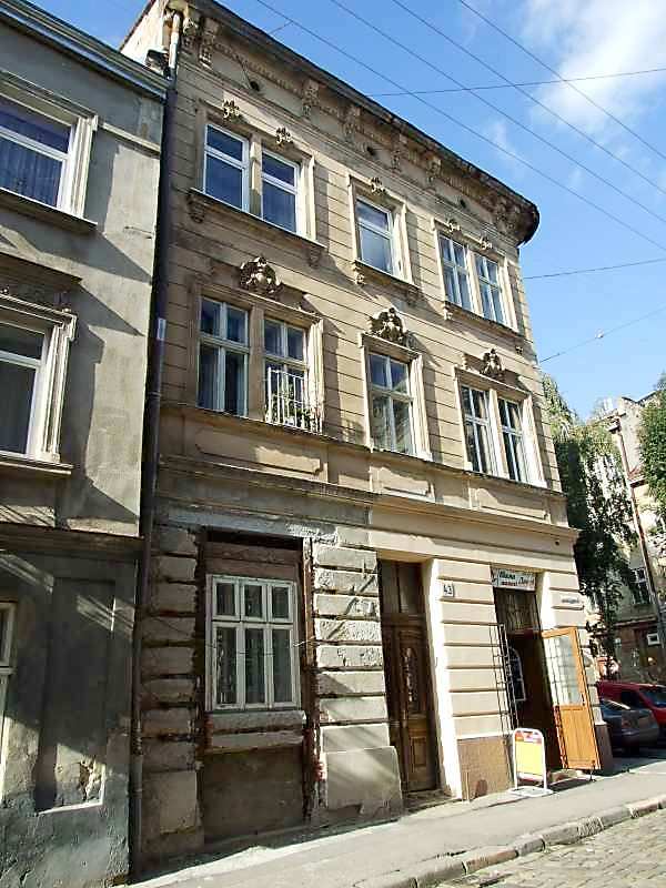 Будинок (№ 43)Розмір зображення: 600:800 піксел Загальний вигляд з боку вул.Братів Рогатинців. 14 вересня 2007 р. Фото М.І.Жарких. |