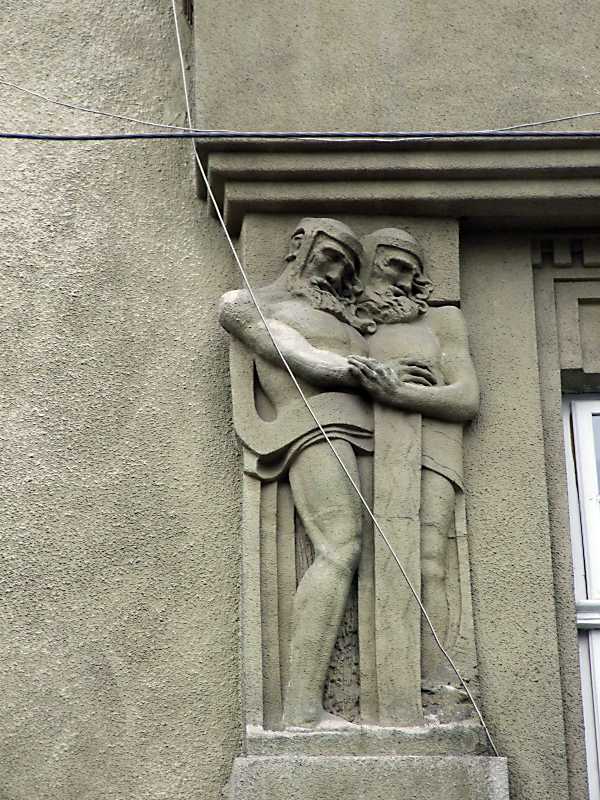 Сецесійна скульптурна група 3-го поверху (ліва)Розмір зображення: 600:800 піксел 7 квітня 2012 р. Фото М.І.Жарких. |