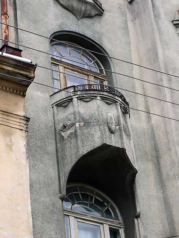 2012 р. Сецесійний балкон 4-го поверху Розмір зображення: 600:800 піксел 7 квітня 2012 р. Фото М.І.Жарких. Попередня сторінка | Вище | Наступна сторінка