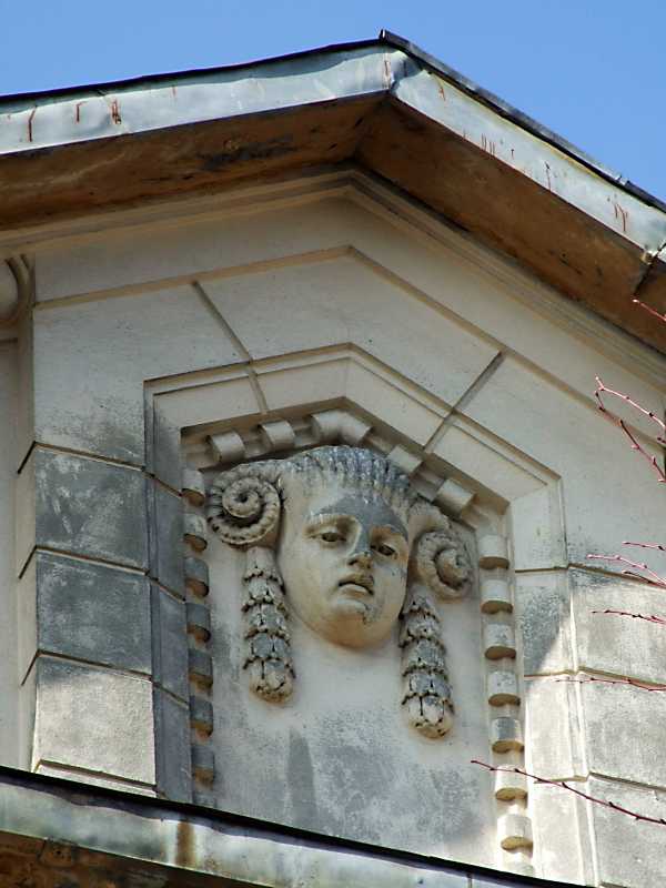 Сецесійний маскарон на фронтоні Розмір зображення: 600:800 піксел 16 квітня 2013 р. Фото М.І.Жарких. Вище | Наступна сторінка
