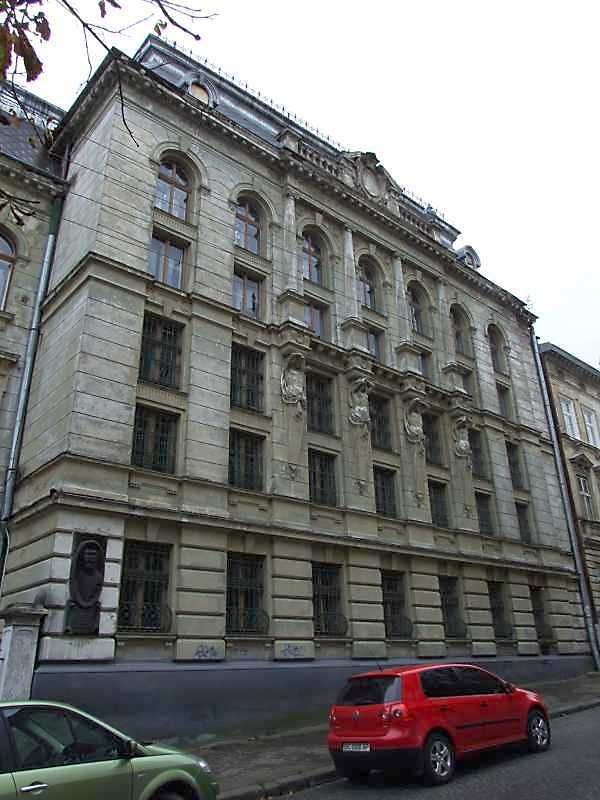 2008 р. Центральна частина головного фасаду Розмір зображення: 600:800 піксел 16 жовтня 2008 р. Фото М.І.Жарких. Вкладені елементи Меморіальна дошка І.Франку