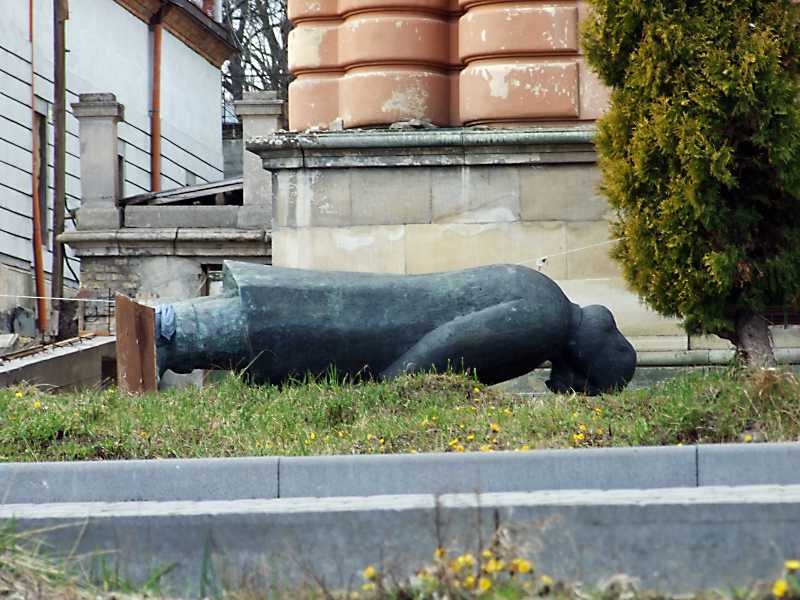 Скульптура лежить у дворіРозмір зображення: 800:600 піксел Така от реставрація… 4 квітня 2012 р. Фото М.І.Жарких. |