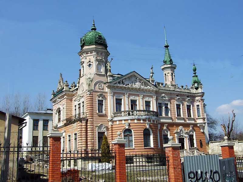 2013 р. Загальний вигляд Розмір зображення: 800:600 піксел 16 квітня 2013 р. Фото М.І.Жарких. Вкладені елементи Бічний фасад Башта (+) Наріжна частина 2-го поверху (+) Фрагмент 2-го поверху з фронтоном (+) Ризаліт-балкон (+)