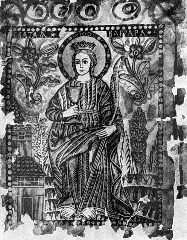 Св.Варвара. Гравюра 1 пол. 17 ст.Розмір зображення: 625:800 піксел Свята Варвара. Народна гравюра. Перша половина XVII ст. Львівський музей українського мистецтва. Джерело: Історія українського мистецтва. – К.: Наукова думка, 1967 р., т. 2, с. 372. |