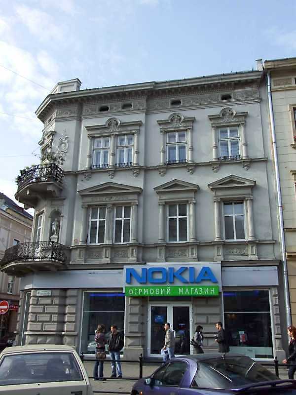 2008 р. Фасад по просп. Шевченка Розмір зображення: 600:800 піксел 16 жовтня 2008 р. Фото М.І.Жарких. Вкладені елементи Вікно 3-го поверху (+) Вікно 2-го поверху