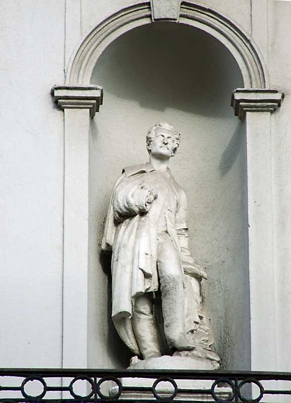 Скульптура Ю.Словацького в ніші 2-го поверху