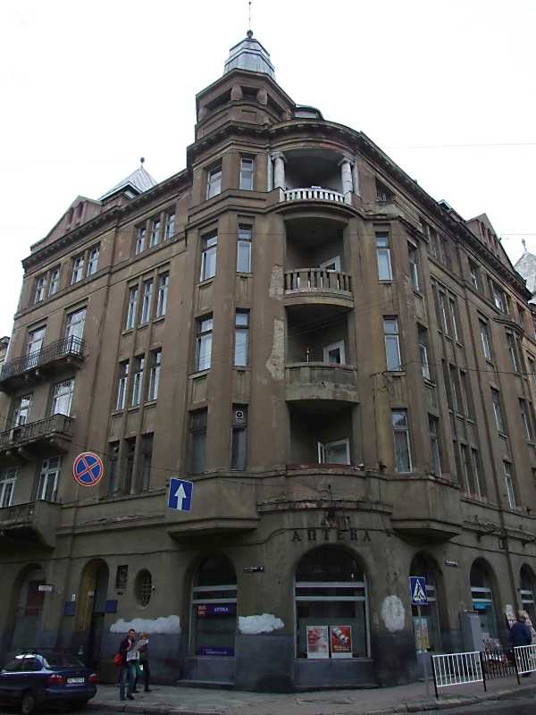 Будинок (вул.Фредра, 2) споруджено в 1912 р. (архіт. Т.Врубель, М.Бурстін) у стилі сецесії.