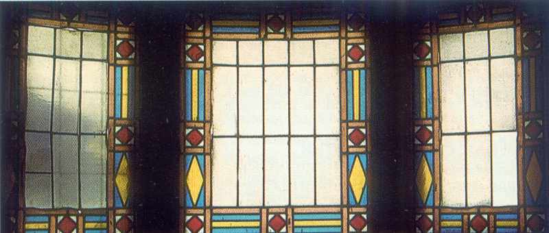 Примітка. Вітражами оздоблено віконні отвори на другому, третьому і четвертому поверхах сходової клітки кам’яниці. Окремі фрагменти вітражів уже втрачені. Ідентичні вітражі оздоблюють вікна будинку № 4 на вул. О.Фредра. Розміри 50: 85, 72: 85 см.
