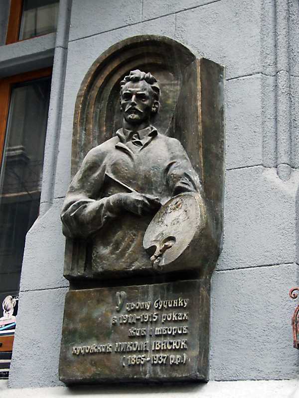 Меморіальна дошка М. ІвасюкуРозмір зображення: 600:800 піксел 7 квітня 2012 р. Фото М.І.Жарких. На дошці напис: «У цьому будинку в 1911 – 1915 роках жив і творив художник Микола Івасюк (1865 – 1937 рр.)». |