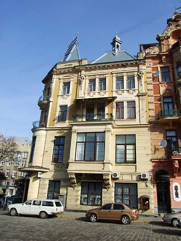 2012 р. Фасад по Соборній площі Розмір зображення: 600:800 піксел 4 квітня 2012 р. Фото М.І.Жарких. Вкладені елементи Вікна 4-го поверху