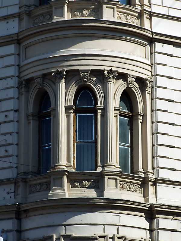 2013 р. Наріжний еркер на рівні 3-го поверхуРозмір зображення: 600:800 піксел 16 квітня 2013 р. Фото М.І.Жарких. |