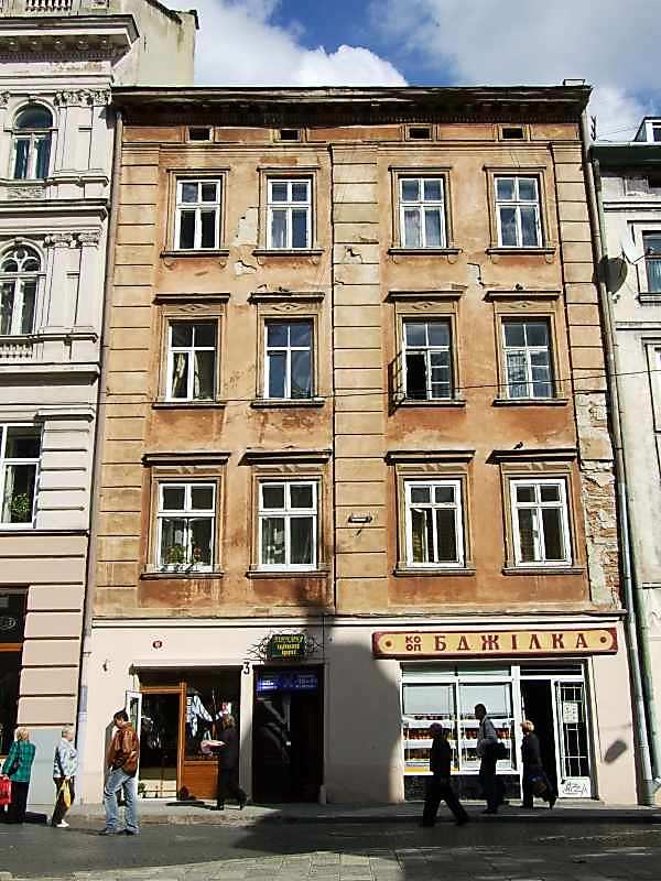 ЖИЛОЙ ДОМ, XVII в. (ул. Галицкая, 3). Капитально перестроен в начале XIX а. От первоначальной постройки сохранились лишь фрагменты. Верхний этаж достроен в 1880-х годах. Кирпичный, П-образный в плане, четырехэтажный. Фасад членят рустованные лопатки, декорируют оконные наличники, венчает аттик и раскрепованный карниз с модульонами. [Памятники градостроительства и архитектуры УССР. – К.: Будівельник, 1985 г., т. 3, с. 22 – 23].