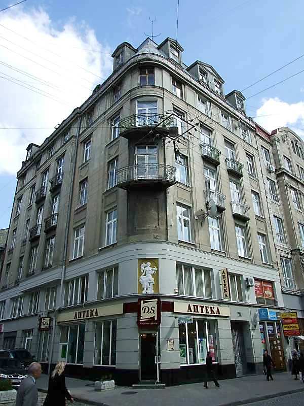 На розі Галицької з вулицею Братів Рогатинців (№ 19) із початку ХХ століття існує аптека, яка за Польщі називалася “Під золотим орлом” і належала Лєшеку Складовському, в середині 1990-х тут установили барельєф зі зображенням богині здоров’я Гігієї, за Польщі в цьому будинку також містилися Купецька позичкова каса та Польський торговельний банк, нині там обладнали салон “Київстар”.