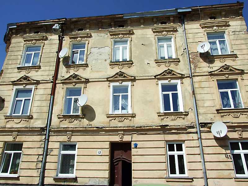 Житловий будинок (№ 12) Розмір зображення: 800:600 піксел 18 квітня 2013 р. Фото М.І.Жарких. Вкладені елементи 2013 р. Вікно 3-го поверху 2013 р. Вікно 2-го поверху 2013 р. Маскарон лева над входом 2013 р. Загальний вигляд