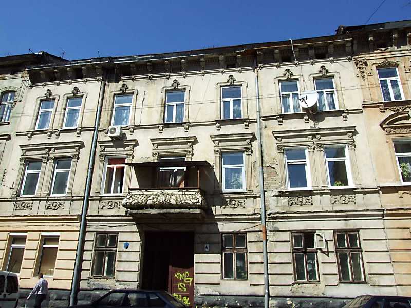 Житловий будинок (№ 4) Розмір зображення: 800:600 піксел 18 квітня 2013 р. Фото М.І.Жарких. Вкладені елементи 2013 р. Вікно 3-го поверху 2013 р. Вікна 2-го поверху