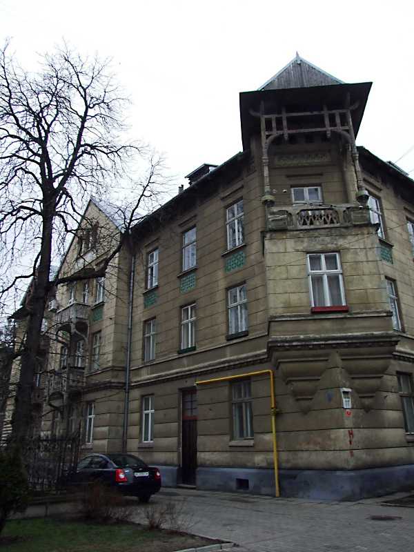 2012 р. Бічний фасад Розмір зображення: 600:800 піксел 7 квітня 2012 р. Фото М.І.Жарких. Вкладені елементи Балкони