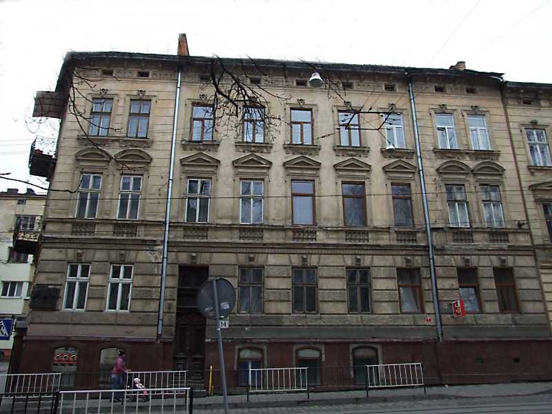 2012 р. Фасад по вул. Чупринки Розмір зображення: 800:600 піксел 7 квітня 2012 р. Фото М.І.Жарких. Вкладені елементи Фриз Вікно 3-го поверху Вікна 2-го поверху Вікно 2-го поверху Вхід