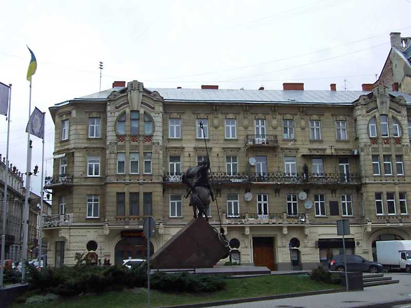 2012 р. Головний фасад Розмір зображення: 800:600 піксел 8 квітня 2012 р. Фото М.І.Жарких. Вкладені елементи Сецесійний вхід