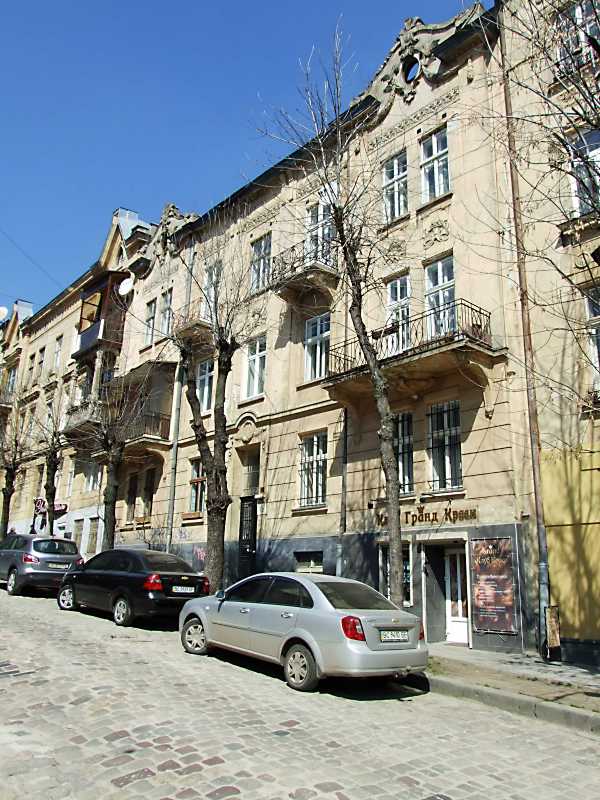 Житловий будинок (№ 15) Розмір зображення: 600:800 піксел 16 квітня 2013 р. Фото М.І.Жарких. Вкладені елементи 2013 р. Вікна 3-го поверху та фронтон 2013 р. Рельєф над вікном 2-го поверху 2013 р. Вхід