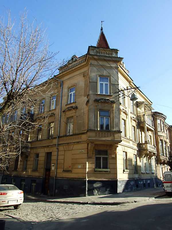 Житловий будинок (№ 2)Розмір зображення: 600:800 піксел Ліворуч – вулиця Менделеєва, праворуч – вулиця Кирила і Мефодія. 18 квітня 2013 р. Фото М.І.Жарких. |