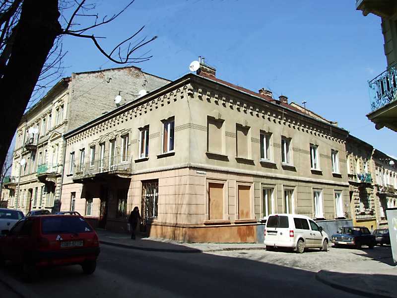 Житловий будинок (№ 8)Розмір зображення: 800:600 піксел Ліворуч – вулиця Глібова, праворуч – вулиця Є. Поповича. 16 квітня 2013 р. Фото М.І.Жарких. |