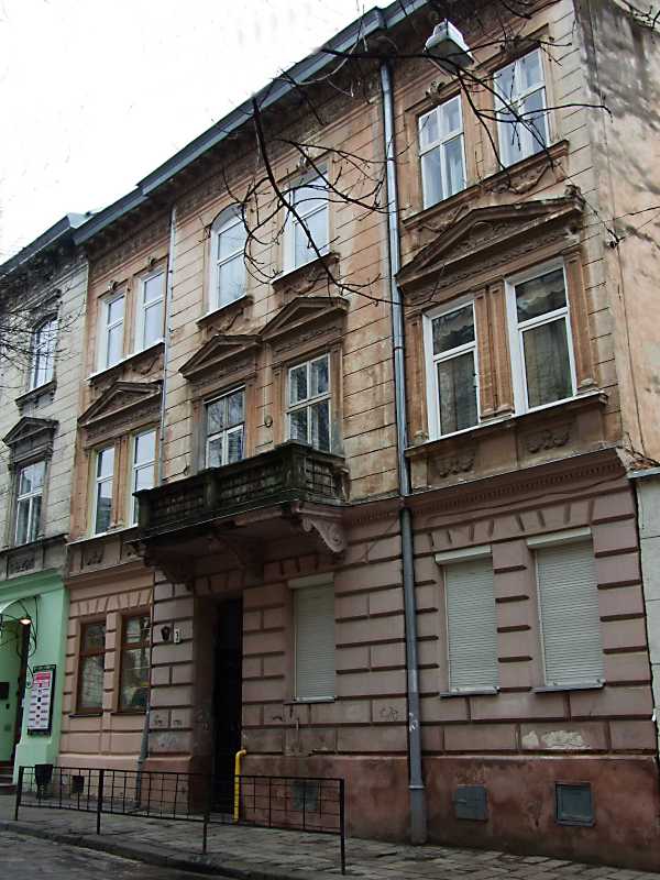 Житловий будинок (№ 3)Розмір зображення: 600:800 піксел 7 квітня 2012 р. Фото М.І.Жарких. У житловому будинку № 3 до 1939 року було поштове відділення № 13. Ілько Лемко Джерело: “”, 9 листопада 2007 року, № 203 (273) |