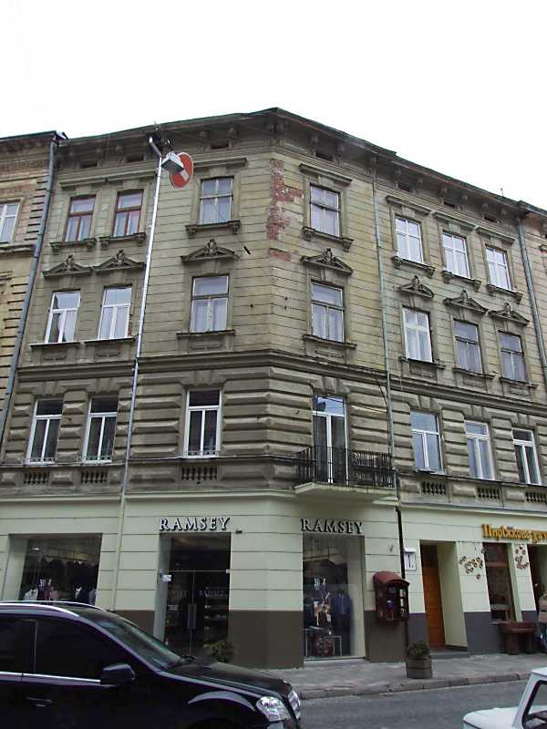 Житловий будинок (№ 19)Розмір зображення: 600:800 піксел 8 квітня 2012 р. Фото М.І.Жарких. Ліворуч – вул. Гнатюка, праворуч – пл. Григоренка. |
