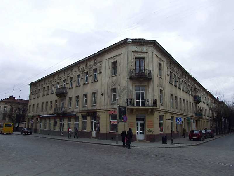 2012 р. Загальний виглядРозмір зображення: 800:600 піксел 8 квітня 2012 р. Фото М.І.Жарких. Ліворуч – вул. Городоцька, праворуч – вул. Гоголя. |