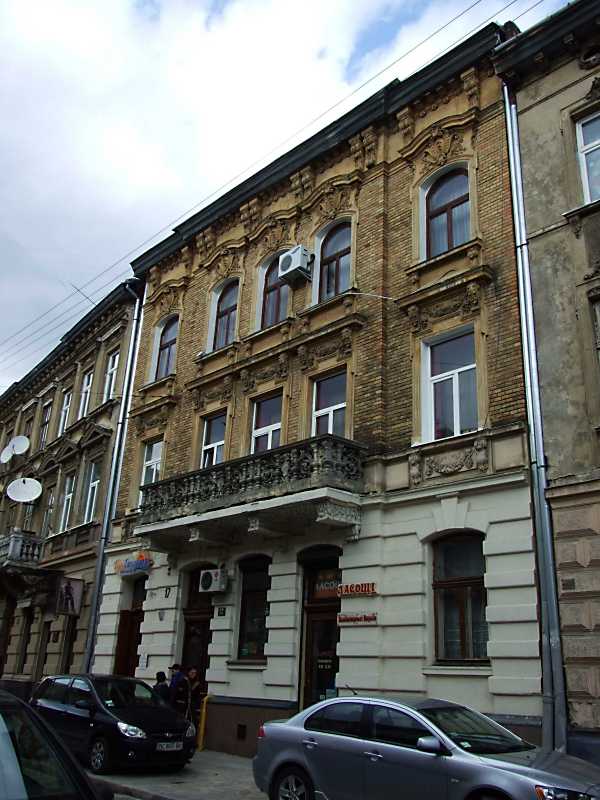 Житловий будинок (№ 17) Розмір зображення: 600:800 піксел 4 квітня 2012 р. Фото М.І.Жарких. Вкладені елементи 2012 р. Рельєфні прикраси 3-го поверху 2013 р. Загальний вигляд (+) 2012 р. Сандрик вікна 2-го поверху