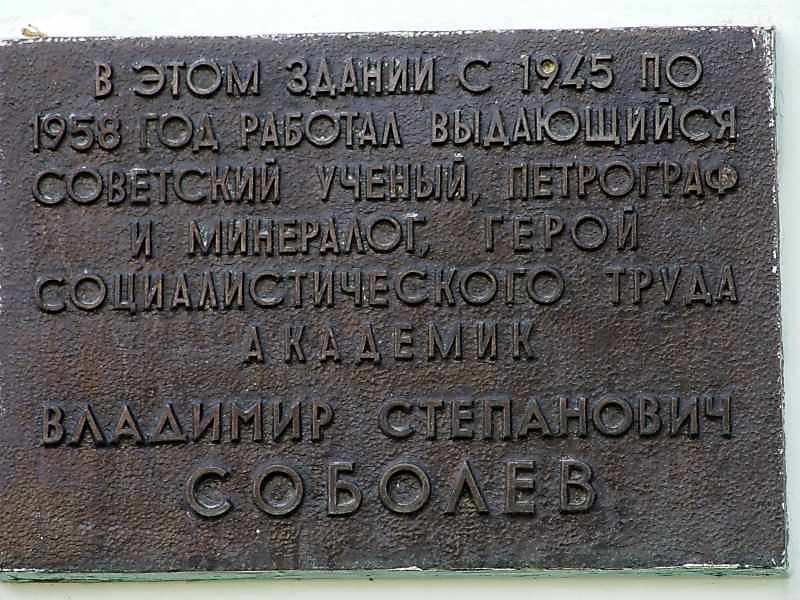 Меморіальна дошка В.С.Соболеву Розмір зображення: 800:600 піксел 15 вересня 2007 р. Фото М.І.Жарких. Попередня сторінка | Вище | Наступна сторінка