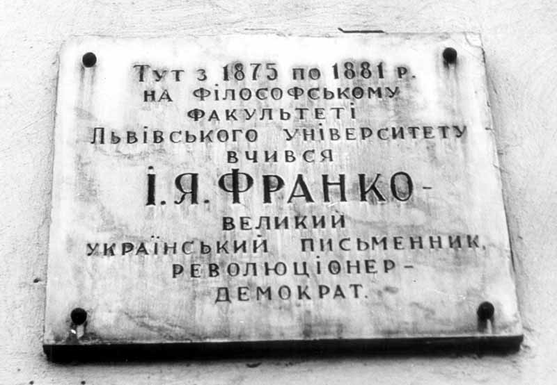 Меморіальна дошка І.Я. Франкові (1956 р.) Розмір зображення: 800:554 піксел Попередня сторінка | Вище | Наступна сторінка