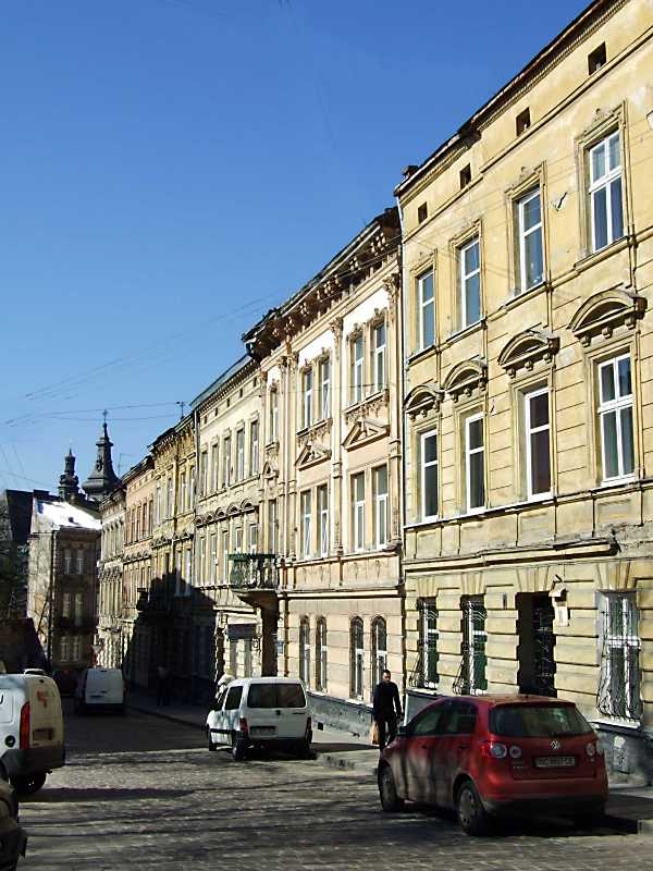 Вулиці Лисенка та Кривоноса з’єднує невеличка вулиця Гуцульська. З середини ХІХ століття вона мала назву Кошарова, бо вела до казарм, розміщених на місці колишнього монастиря Театинів. Із 1871 року називалася Червоною, бо вела до того самого Червоного кляштору, дах якого вкритий червоною черепицею. Із 1885-го мала назву Люблінської унії на честь державної унії Польщі та Литви 1569 року. За німецької окупації вулиця називалася Ауршперґґассе, а від 1944 року стала Гуцульською. Забудована у стилі віденського класицизму межі ХІХ і ХХ століть.