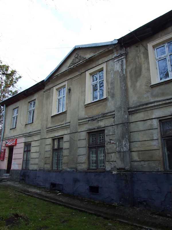 2012 р. Фрагмент бічного фасаду Розмір зображення: 600:800 піксел 7 квітня 2012 р. Фото М.І.Жарких. Вкладені елементи Рельєфний тимпан