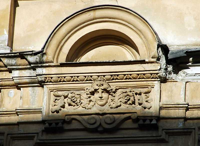 Фронтон над вікном 2-го поверху Розмір зображення: 800:586 піксел 16 квітня 2013 р. Фото М.І.Жарких. Вище | Наступна сторінка