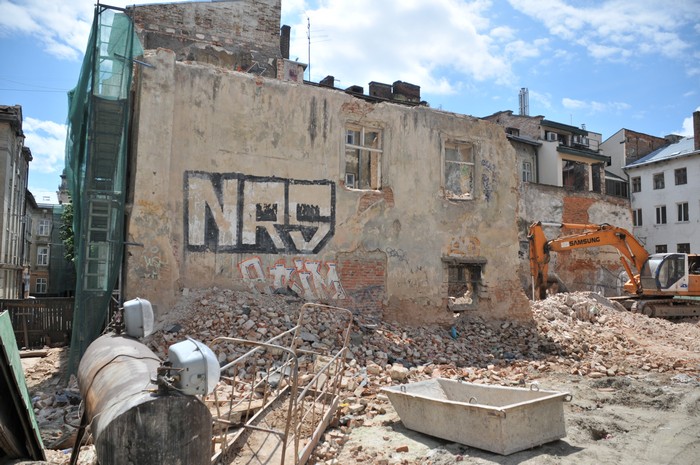 – Ми попередньо мали низку зауважень до підрядника, згідно з проектом вони зобов’язувалися укріпляти частини будинку, але робили це неналежно, з певними відхиленнями, – коментує “Пошті” Лілія Онищенко, начальник управління охорони історичого середовища ЛМР. – Те, що зараз спостерігаємо, називається виведенням будинку з аварійного стану. Це не розбирання, а роботи, які визначені проектною документацією. Згідно з проектом підрядники мали ліквідувати аварійний стан будинку до рівня другого поверху. Зараз на цій території проводять археологічні роботи.