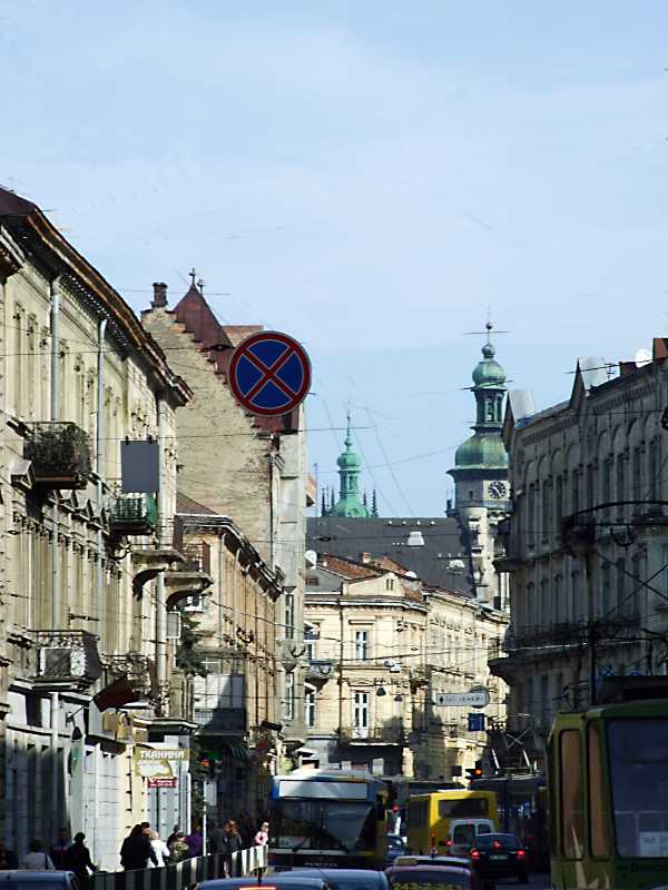 Перспектива від початку вул. Зеленої в бік центру і костелу бернардинів. 16 квітня 2013 р. Фото М.І.Жарких.