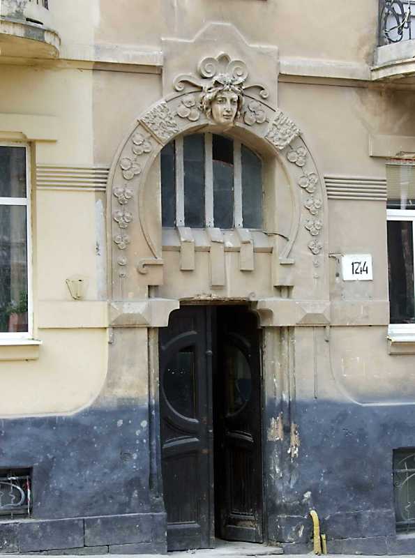 2012 р. Сецесійний вхід Розмір зображення: 595:800 піксел 4 квітня 2012 р. Фото М.І.Жарких. Вкладені елементи Сецесійний маскарон