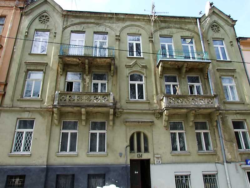 Житловий будинок (№ 134)Розмір зображення: 800:600 піксел 4 квітня 2012 р. Фото М.І.Жарких. Давня адреса – св.Софії, 50. Будинок в готичному стилі споруджено в 1911 – 14 рр. |